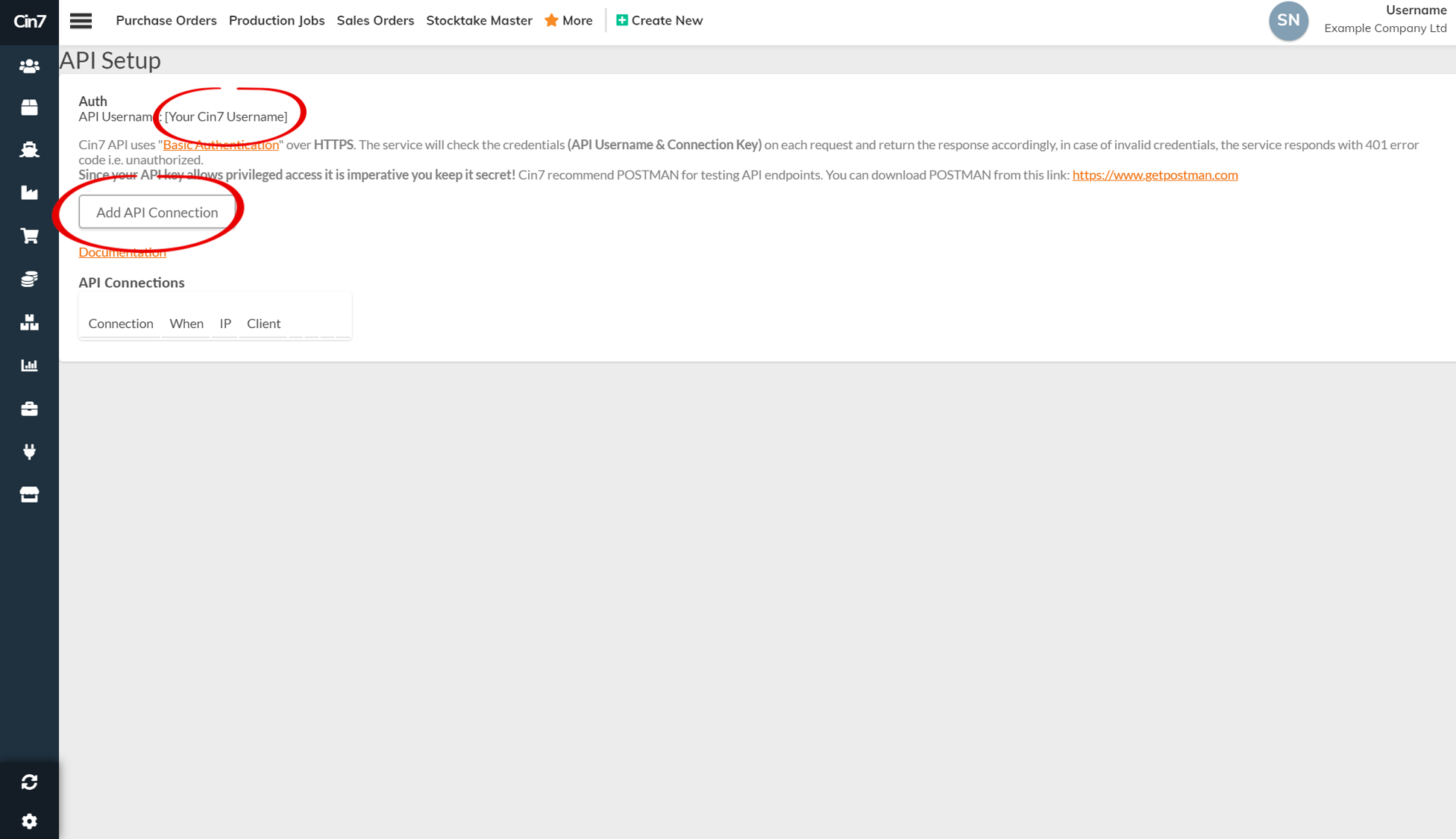Whilst signed in to CIN7, click here to go into the API Setup page.