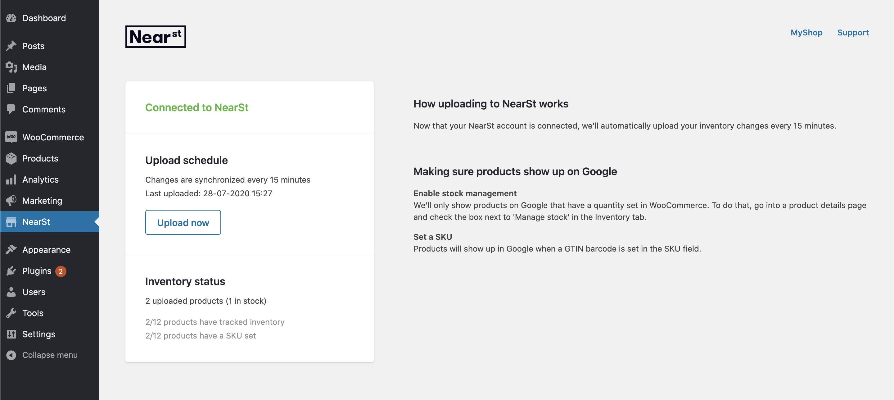 To allow NearSt to retrieve your stock from WooCommerce, you'll need to install the NearSt plugin for WooCommerce. This is a very simple process, and should only take a few minutes.