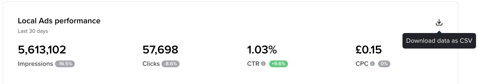Simply select a date range, and download your shop’s clicks, impressions and estimated footfall.