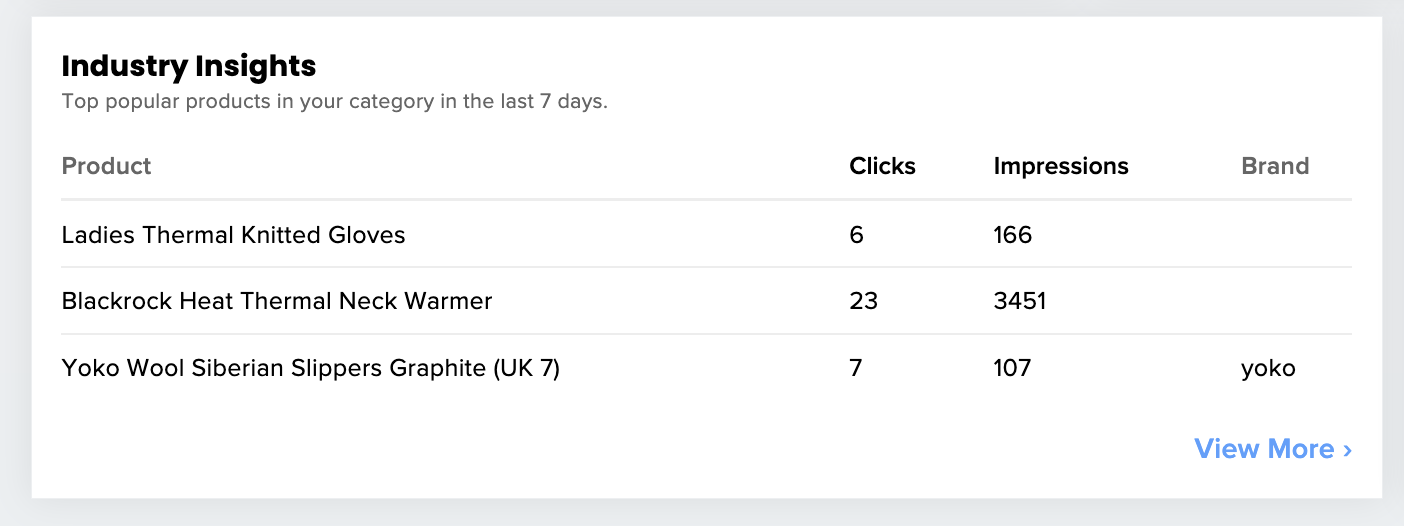 Based on your shop category, we show the most popular products across similar stores in our community. This allows you to see what is selling well or stock new products to attract more shoppers.