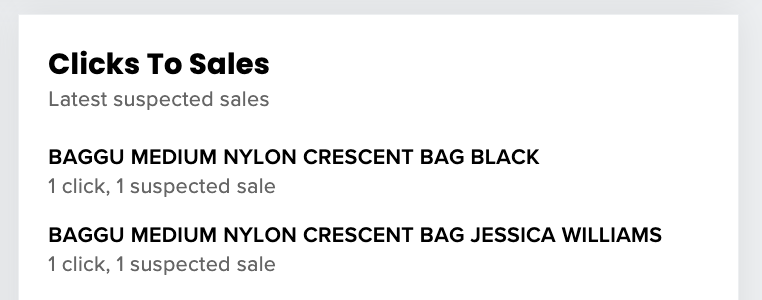 If a product has been clicked on and your Point of Sale notifies us it has sold in-store within a 24-hour period, we suspect this is a 'Click to Sale'. This is an easy conversion tool to help you see that NearSt is working!