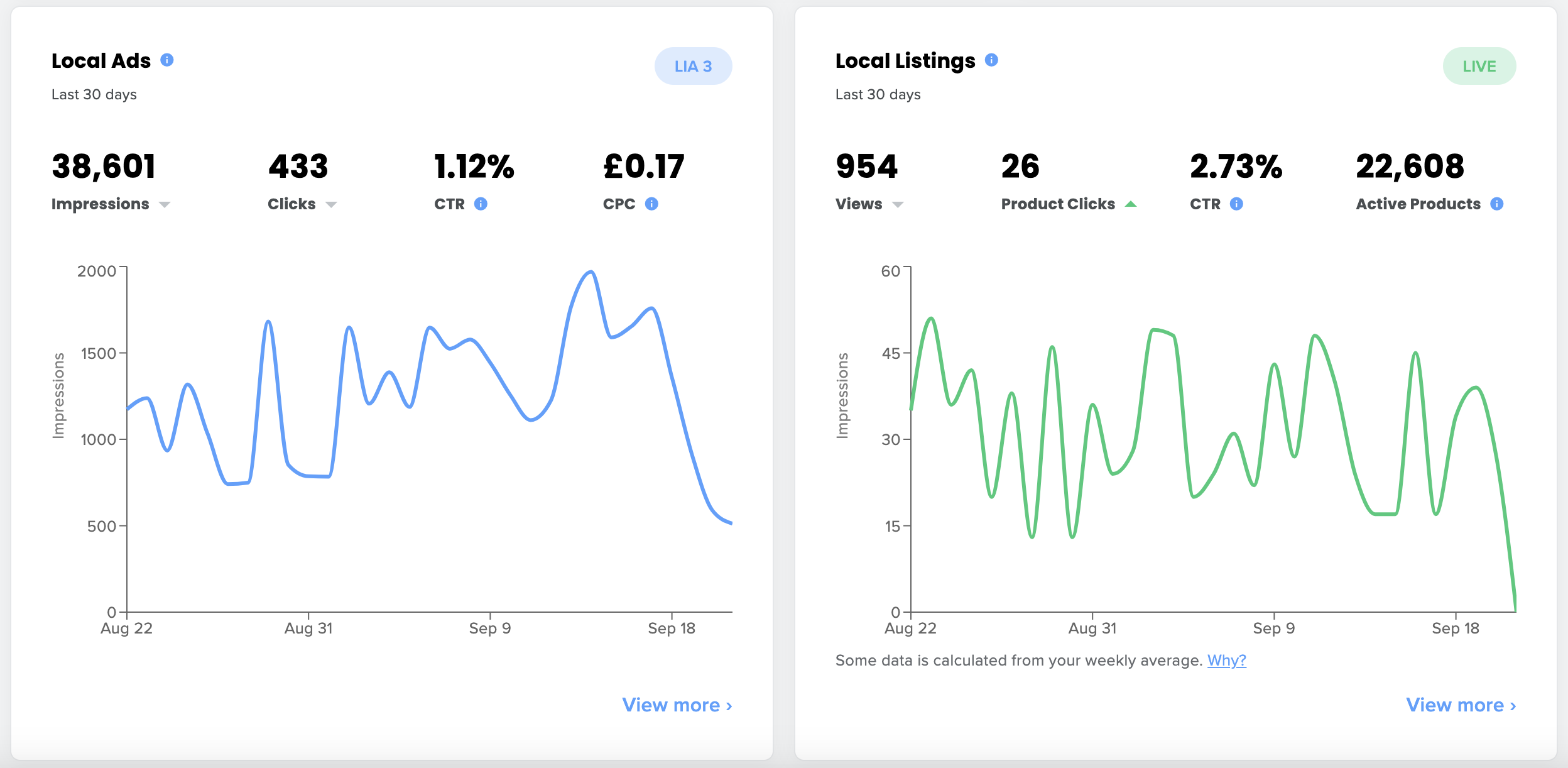 For total clarity, we display the online performance of your products into Local Listings and Local Ads (if these have been activated). This segmentation helps to see at a glance, how your products are performing organically and with the added boost of sponsored ads.