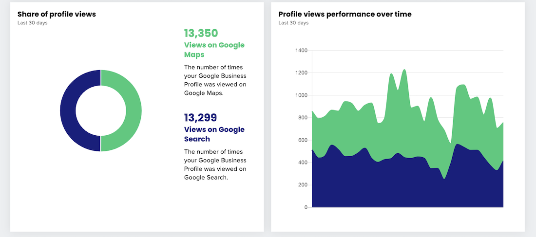 We provide a summary of how people find your Google Business Profile and a breakdown of how visitors to your Google Business Profile interact with it.