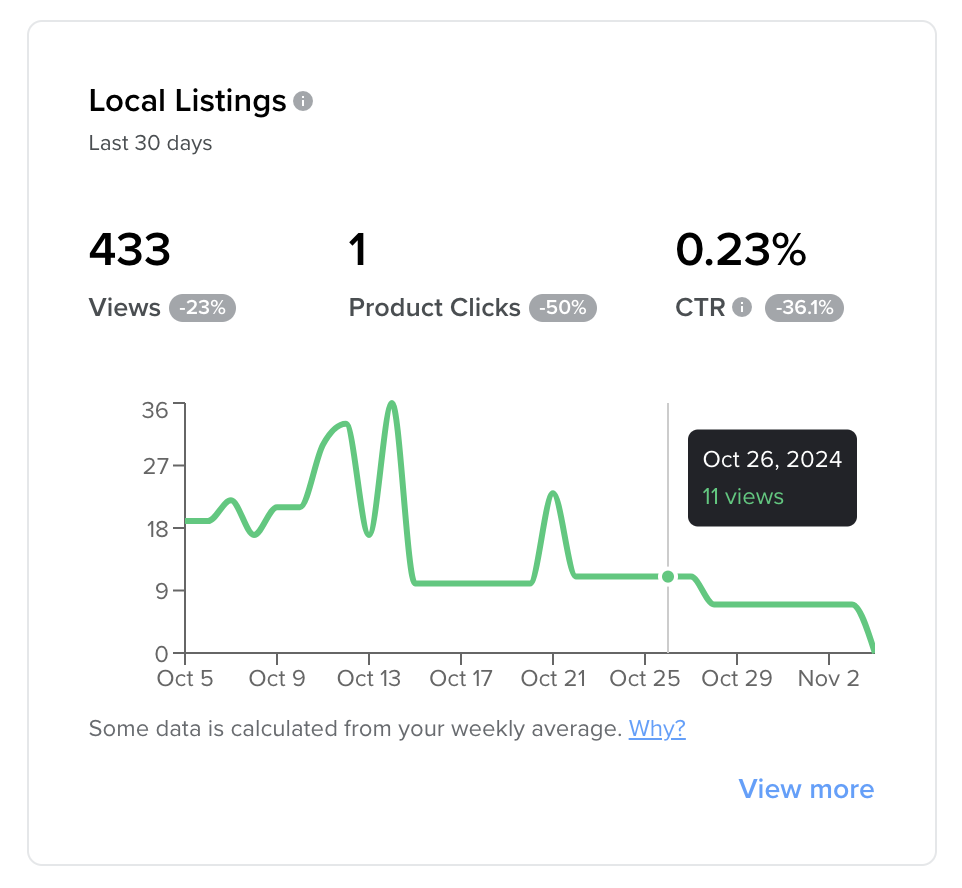 Occasionally, you might see a message in Local Listings graphs in the NearSt dashboard explaining the data is an estimate based on a weekly average.