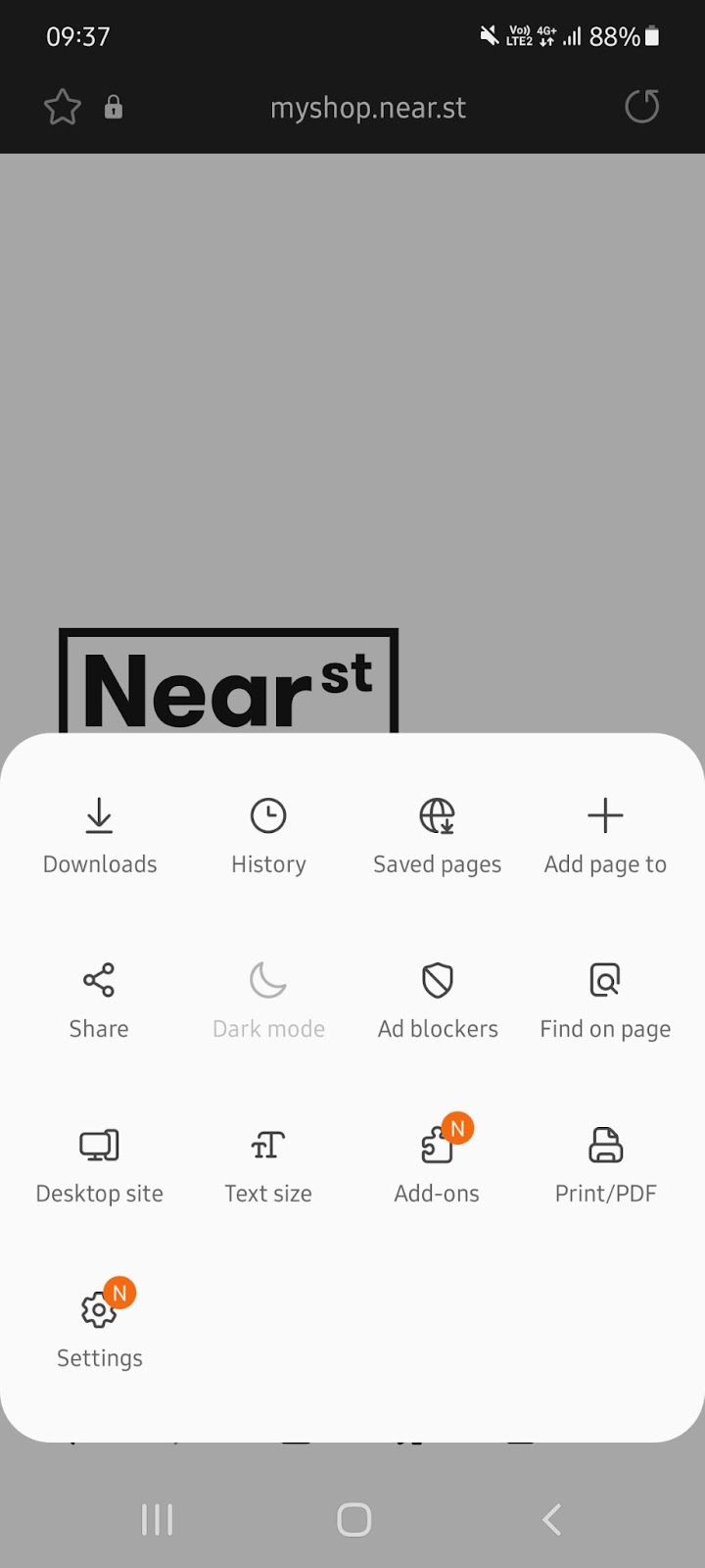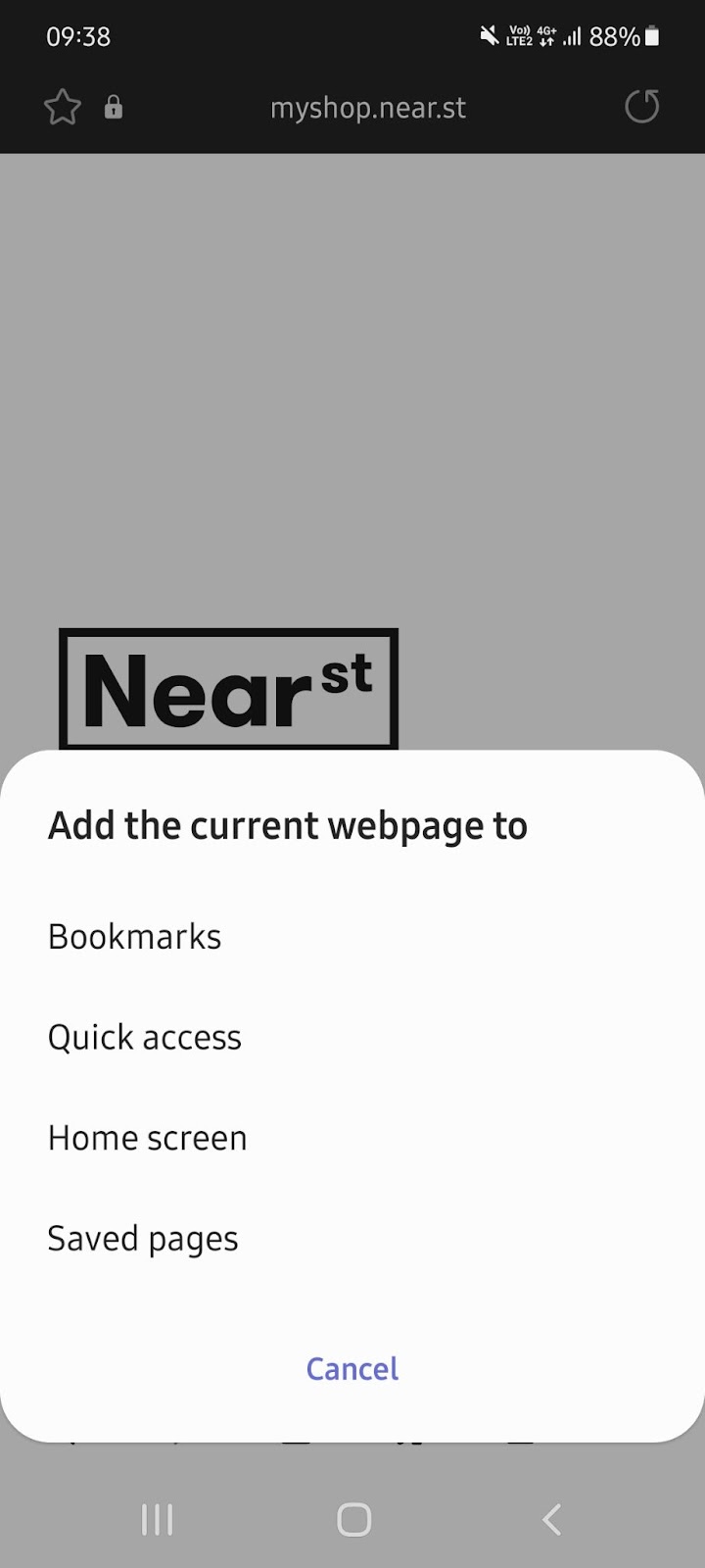 1. In your Chrome browser on your Android phone, type myshop.near.st into the URL search bar