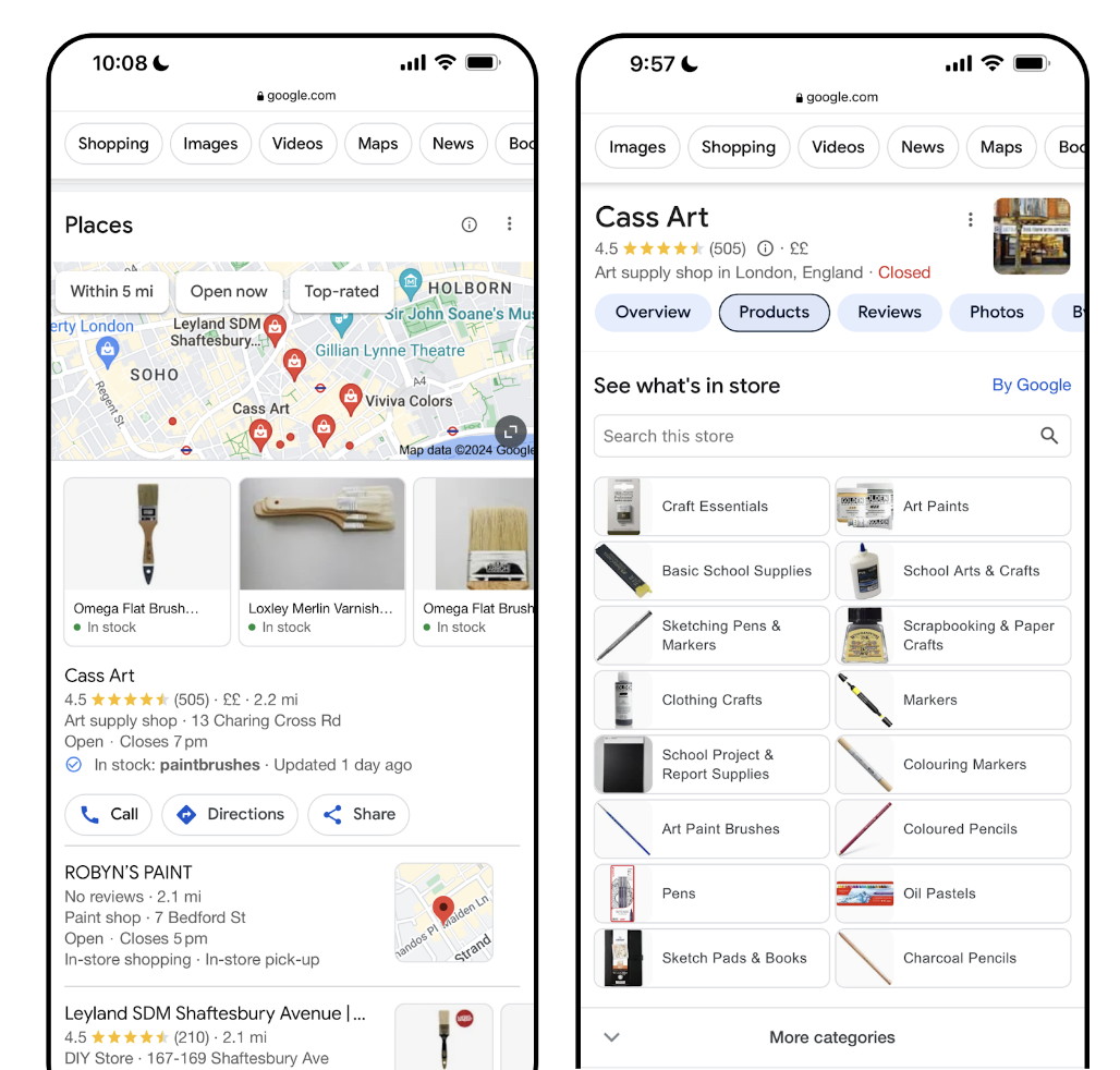 Google “See What’s In Store” displays live in-store inventory in Google My Business listings for retailers. This live view of stock helps potential customers see that a shop has what they’re looking for and attracts them to come in-store.