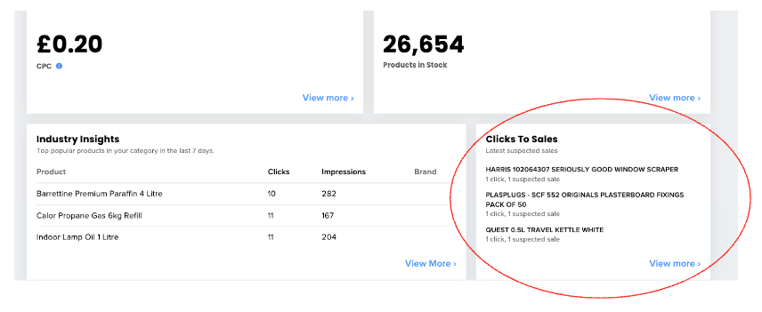 We match items that have seen a reduction in stock levels within 24 hours of being clicked on in Google. In our research, this is the time frame when a shopper clicks on a product in Google, that they are most likely to go into the shop.