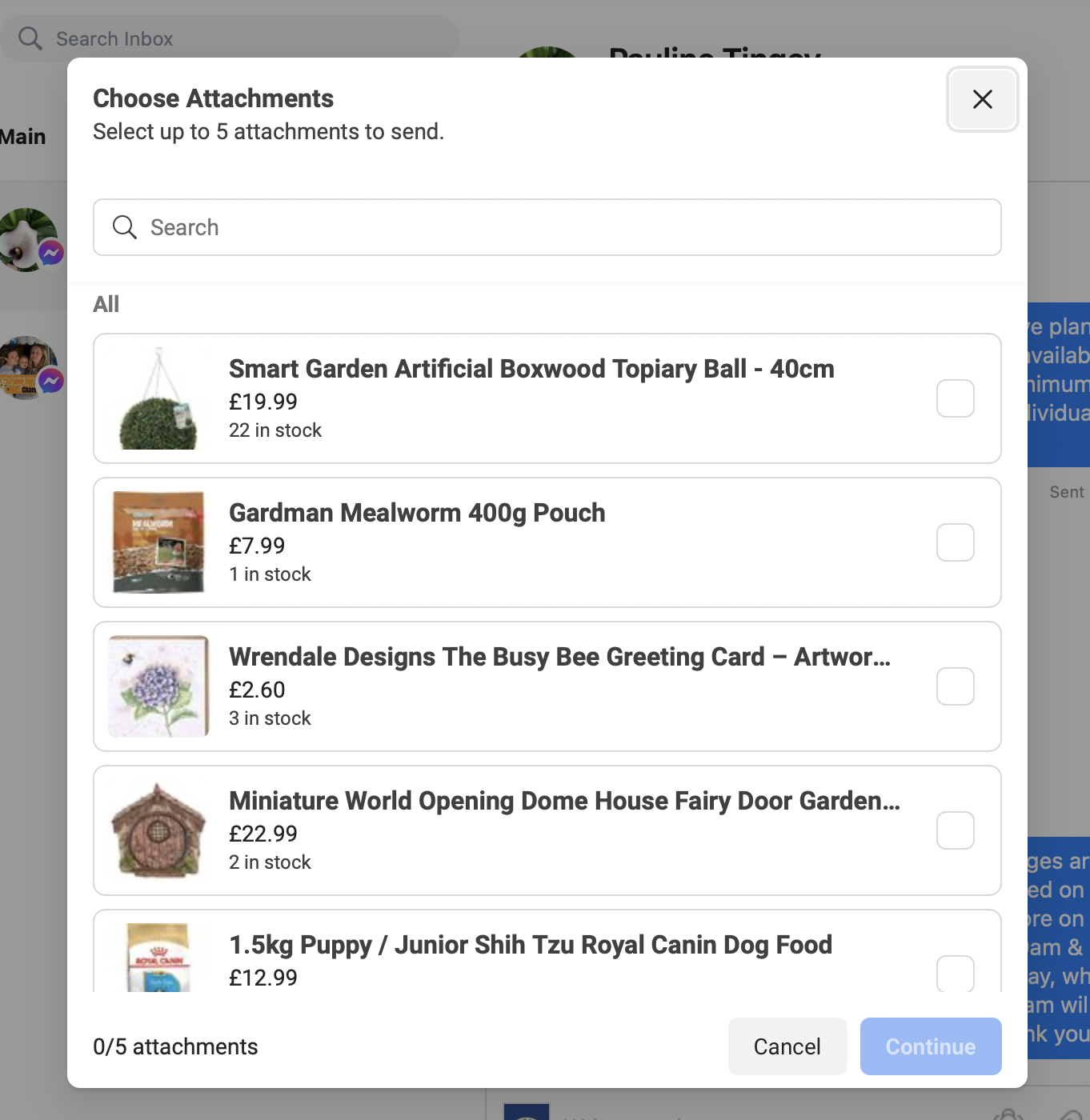 Once you locate the product you would like to share on your Facebook shop, scroll down and press ‘share’. You should then have the option to ‘send in messenger’. You can also send products directly in Messenger as seen below.