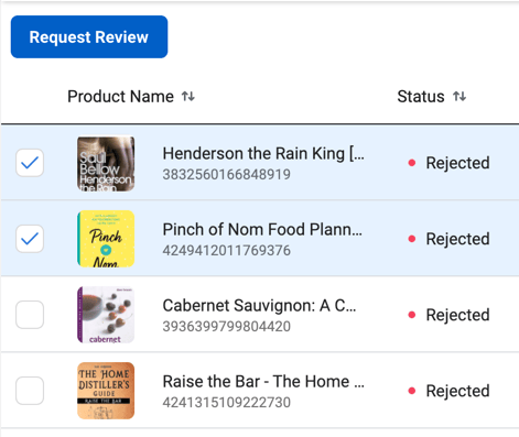 You can easily request a review in your Commerce Manager account by selecting the items and clicking Request Review.