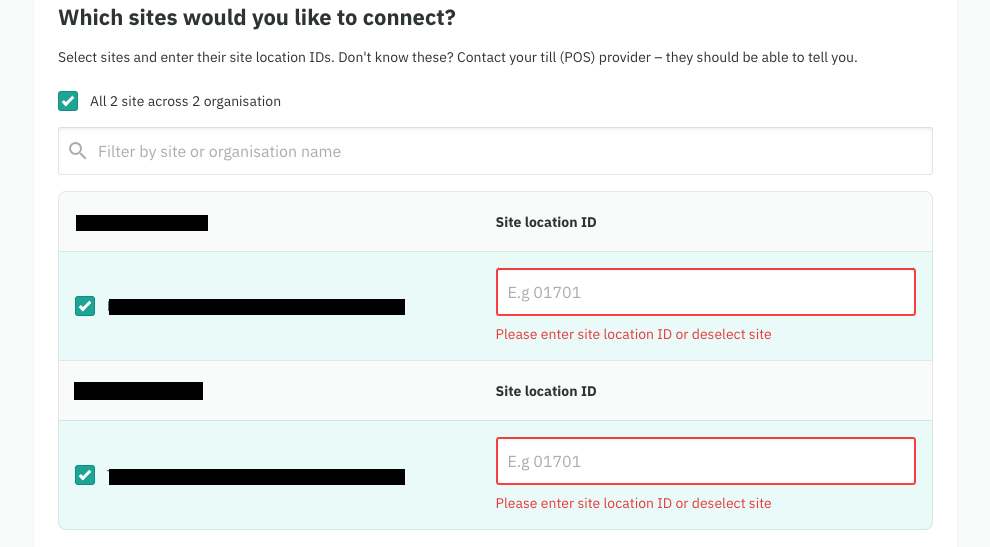Check the boxes next to each of the locations you’d like to enable the NearSt integration for. In the Site ID field, enter the IDs provided by NearSt for each location.