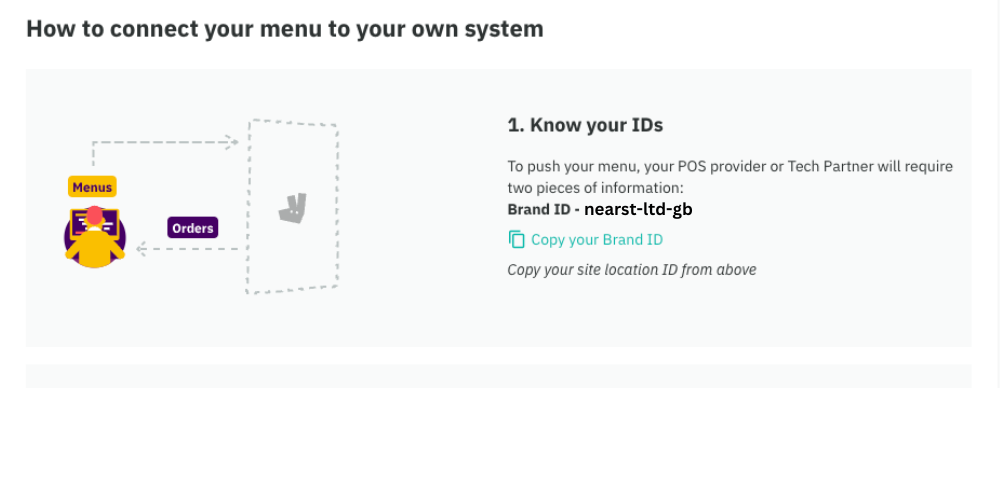 Deliveroo will now show you a Brand ID - please send this back to your NearSt account manager so they can finish the setup for you. No need to click the ‘Connect your orders’ button.